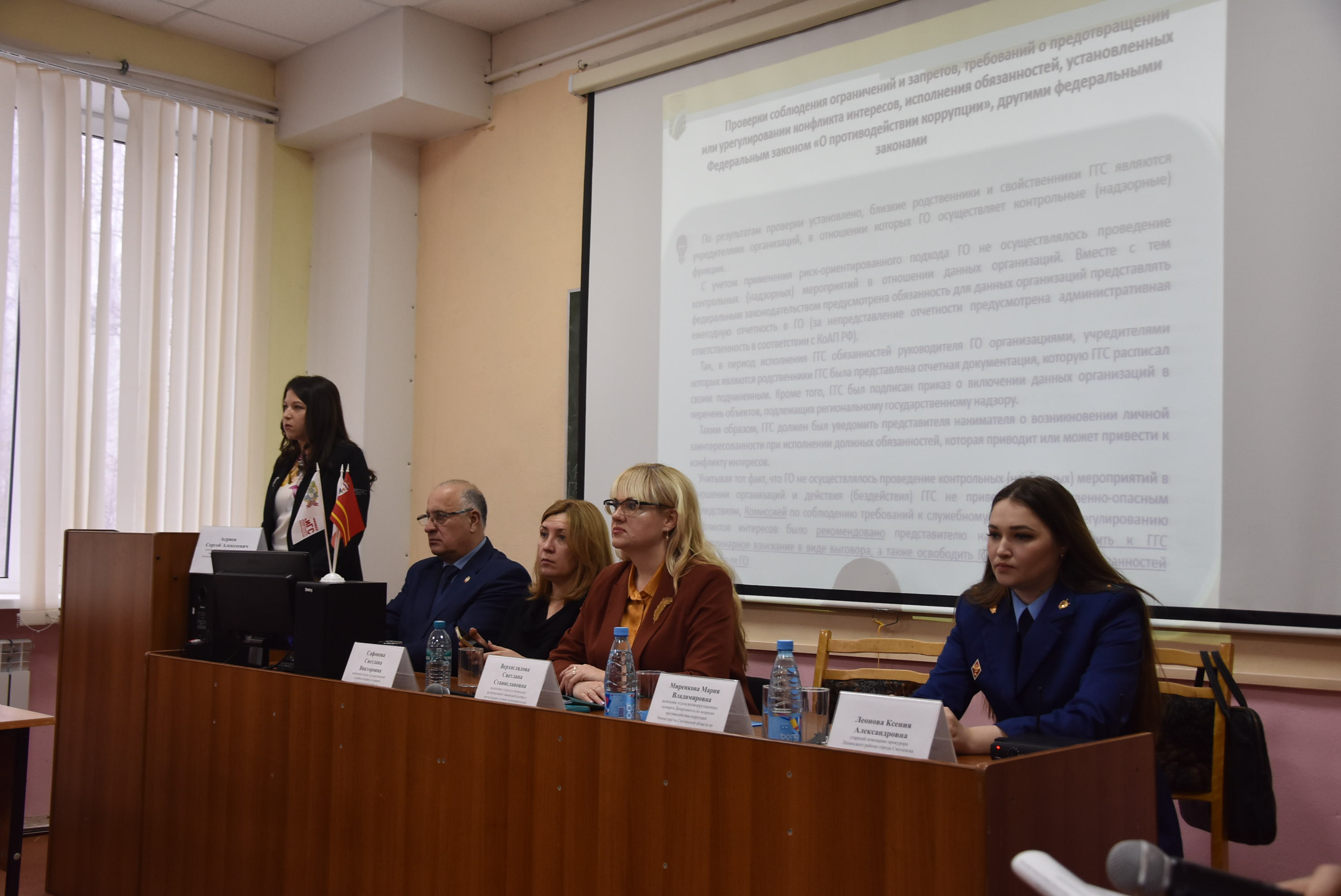 В ходе круглого стола были заслушаны доклады представителей прокуратуры Смоленской области, Управления Министерства юстиции Российской Федерации по Смоленской области, Управления Росреестра по Смоленской области, департамента, студентов и преподавателей филиала.